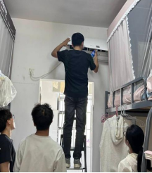 随着气温逐渐攀升,住在25栋学生宿舍里的学生反映空调不制冷,想通过自行清洗滤网来解决这项问题。但学生们发现空调挂机离地面太高,自行拆卸滤网很艰难,便向学院反映此类问题,寻求解决方案。医学院党总支书记高伟老师得知学生们的困难后,为了迅速解学生之困,给同学们创建一个舒适的宿舍环境,便立即号召动员师生党员组建志愿服务队,并提前悉心策划活动方案以及采购步梯、空调清洗剂等物资。2025年4月23日下午,医学院教师党支部联合学生党支部正式开展了师生党员进宿舍义务帮助学生清洁消毒空调活动。