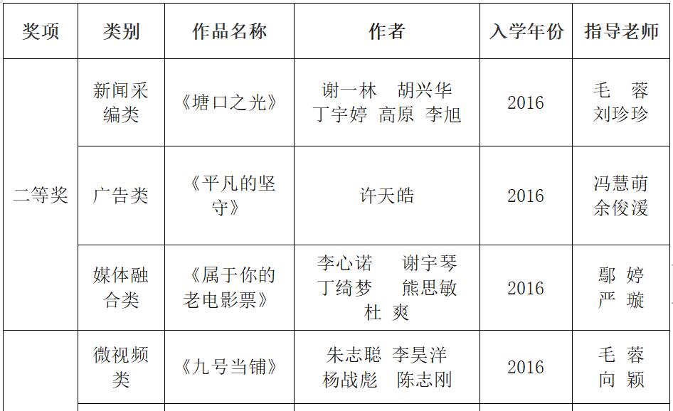 江汉大学文理学院湖北大学生新闻传播教育创新实践技能竞赛获奖作品名单