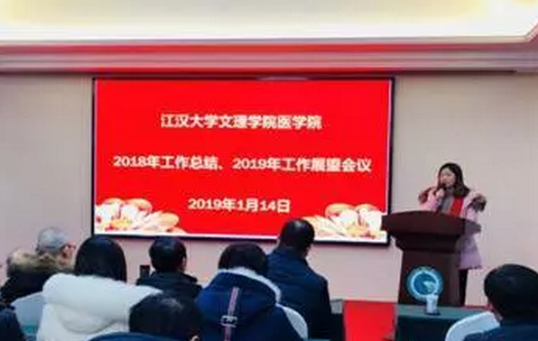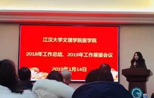 2019年1月14日下午,江汉大学文理学院医学院于马跡山生态农庄酒店四楼会议室,召开了医学院2018年工作总结、2019年工作展望会议。江汉大学文理学院校长崔东教授、副校长万波教授、副书记易凡老师及医学院全体教职工参加了此次会议。本次会议由医学院副院长管斌教授主持。