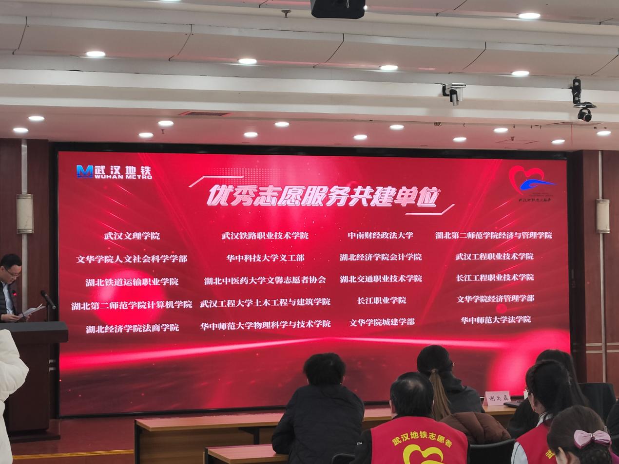 作为武汉地铁的长期合作伙伴,青年志愿者协会每年提供数万小时的服务支持。上一学年,学校第四次荣获武汉地铁“优秀共建单位”称号,这份荣誉背后,是无数志愿者凌晨上岗、深夜归来的坚持。