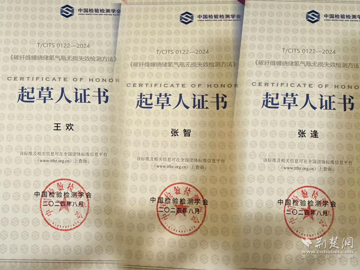 荆楚网(湖北日报网)讯(记者唐天琪 通讯员张智)近日,中国检验检测学会发布了《碳纤维缠绕储氢气瓶无损失效检测方法》团体标准。该标准的制定得到了多家单位的积极参与,其中包括中国特种设备检测研究院、中材科技(苏州)有限公司、华东理工大学、南京航空航天大学以及武汉文理学院等。