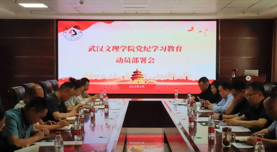 4月25日下午,武汉文理学院党纪学习教育动员部署会在行政楼912会议室隆重召开。校党委书记杜永成主持会议并作动员部署讲话。学校党委、纪委全体委员、各学院党总支书记、马克思主义学院党支部书记、各直属党支部书记参加会议。