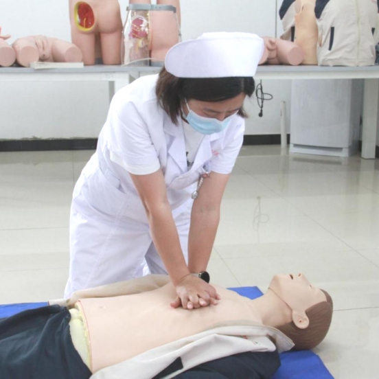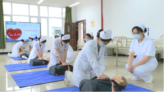 曹佑梅老师带领学生进行心肺复苏实训