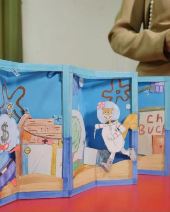 在学前教育的环境创设课堂上,除了为学生们打好环境创设系统知识体系基础,老师们还会让同学观察分析幼儿园环境创设的相关视频照片,了解幼儿园室内外环境,主题环境创设,以丰富的现实素材及案例分析,促进学生逻辑思维的提升;还会设计课程拓展模块,结合幼儿五大领域进行环境创设,让同学们创作出属于自己的“迷你”环境,激发学生自主学习兴趣,同时提高学生手工、审美等综合能力。
