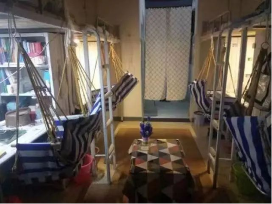 @有品位的酷洛米:寝室就是我的家。四人间配备了上床下桌、独立卫浴等。学校还专门为考研的同学准备了双人间和三人间呢!