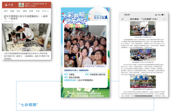 武汉文理学院“七彩少年”志愿服务队在湖北省文明办、共青团湖北省委指导,长江云公益、湖北省志愿者协会主办的“七彩假期”社会实践活动中,荣获省级优秀志愿服务团队称号。