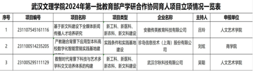 近日,教育部公布2024年第一批产学合作协同育人项目立项名单,武汉文理学院成功获批三项产学合作协同育人项目。