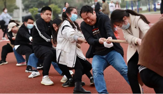 3月29日的活动吸引了全校600余名教职工参加。现场活动丰富多彩、精彩纷呈,拔河、集体8字跳绳、十人九足、“众星捧月”、毛毛虫竞速等项目和各类小游戏集趣味性与竞技性于一体,赛场气氛紧张活泼,喝彩声、欢笑声此起彼伏。