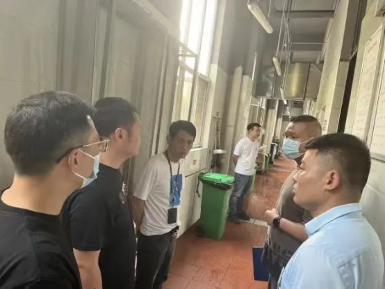 在学校食堂和商业街,王明光一行重点检查了食堂卫生、食材新鲜度、厨余垃圾清理、消防设施规范使用及配备等问题。王明光强调,食品安全问题直接关系全校师生的身体健康和生命安全,各单位一定要高度重视,确保每个环节的安全。