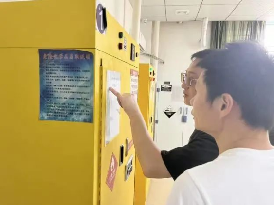 随后,王明光一行检查了存有危化品的医学院实验室仓库。他认真察看了存储环境和条件,仔细询问了存储设备的功能以及配备的消防器材。他强调,一定要加强实验室工作人员安全教育,提升安全意识,健全安全工作体制。