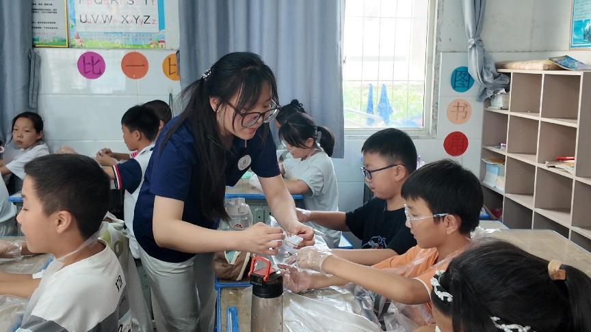 此次扎染课程是赤商追光者志愿服务队暑期实践活动的一部分。除扎染课外,服务队还开设了课业辅导、手工课、财商课等一系列课程,旨在丰富孩子们的暑期生活,助力乡村教育,传承优秀传统文化。
