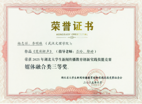 在同期举办的2025湖北大学生新闻传播教育创新实践技能竞赛中,人文艺术学院新闻传播系学子在教师团队的悉心指导下奋勇争先,凭借扎实的专业功底、创新的创作思路与高质量的实践作品脱颖而出,一举斩获一等奖2 项、二等奖 2 项、三等奖6项,获奖类别覆盖微视频、新闻采编、广告、媒体融合、数智作品、学术论文六大赛道,成果覆盖广度与质量均创历史新高。