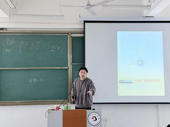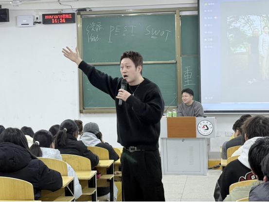 随后,北京电影学院毕业的吴宇峰从专业制作角度进行了深入剖析。他系统讲解了短剧市场的现状与发展趋势,详细介绍了从剧本创作到拍摄制作的全流程,并分享了影视制作中的实用技巧。吴老师将学院派的专业知识与产业实践相结合,为在场同学呈现了一个立体、完整的行业图景。