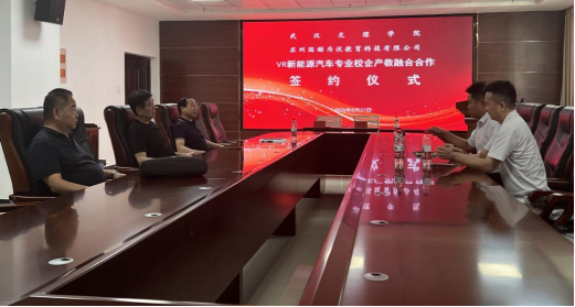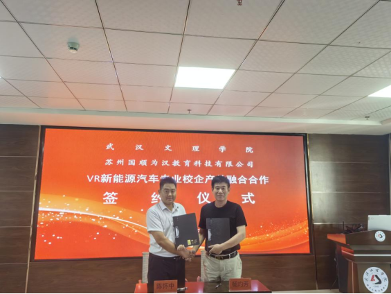8月27日,武汉文理学院与苏州国顺为汉教育科技有限公司正式签署VR新能源汽车专业校企产教融合合作协议。武汉文理学院副校长杨灼芳出席签约仪式。