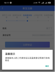 (2)点击进入身份验证,提示请准备本人蓝底登记照片和二代身份证: