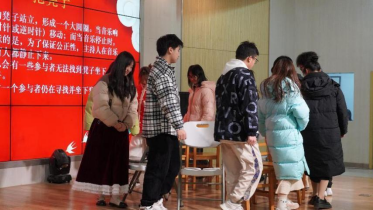 中场小游戏“抢凳子”,老师和同学们都积极踊跃参与,气氛在游戏过程中逐渐升温。随着留下的参与者越来越少,游戏也越来越激烈,紧张、欢乐的氛围展现了当代年轻人的朝气蓬勃,更展现了真正的自我。