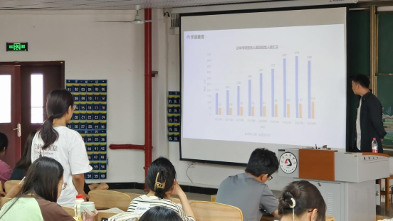 分享会现场气氛热烈,座无虚席。王金辉老师以其深厚的考研指导经验,为大家详细解读了考研政治、英语等科目的备考策略,分析了不同专业的考研方向以及备考时间安排,将自己多年经验一一传授给大家。23级学姐王飘则是从自己的亲身经历出发,分享了关于考研前期的准备工作:怎么选择要报考的院校、专业和备考时间线,以及英语学硕的初复试经验和学习资源分享。她表示,备战考研的过程充满了艰辛和挑战,但正是这些经历让她更加坚定了自己的目标。她鼓励大家要勇敢面对困难,保持积极的心态,相信自己一定能够取得好成绩。