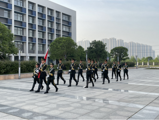 7时整,升旗仪式正式开始。国旗护卫队迈着整齐的步伐,护送鲜艳的五星红旗迈向升旗台,伴随着雄壮激昂的《义勇军进行曲》,五星红旗冉冉升起,在场师生庄严肃穆,伴随着国歌声行注目礼,展现出体育学院师生们坚定的信念与昂扬的斗志。