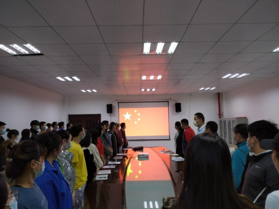 全体起立,奏唱国歌