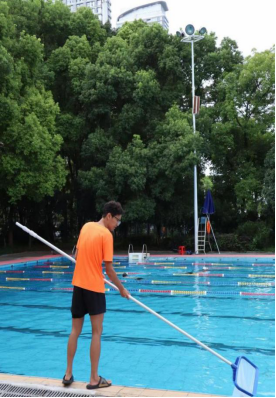 今年暑假和师兄一起来到了汉阳江滩水上乐园,我们要在这里度过一个充实有意义的假期。我们的工作是救生员,每天负责整个泳池的清洁,保证优良的水质。早上起床后,大家分工干活,有的去打扫泳池周围的卫生,打捞泳池的脏物、落叶及漂浮物;有的对泳池进行清理放水,对池水进行消毒;有的负责入口处洗脚池的清洗和更衣室的卫生;有的去市场买早餐回来给大家享用。