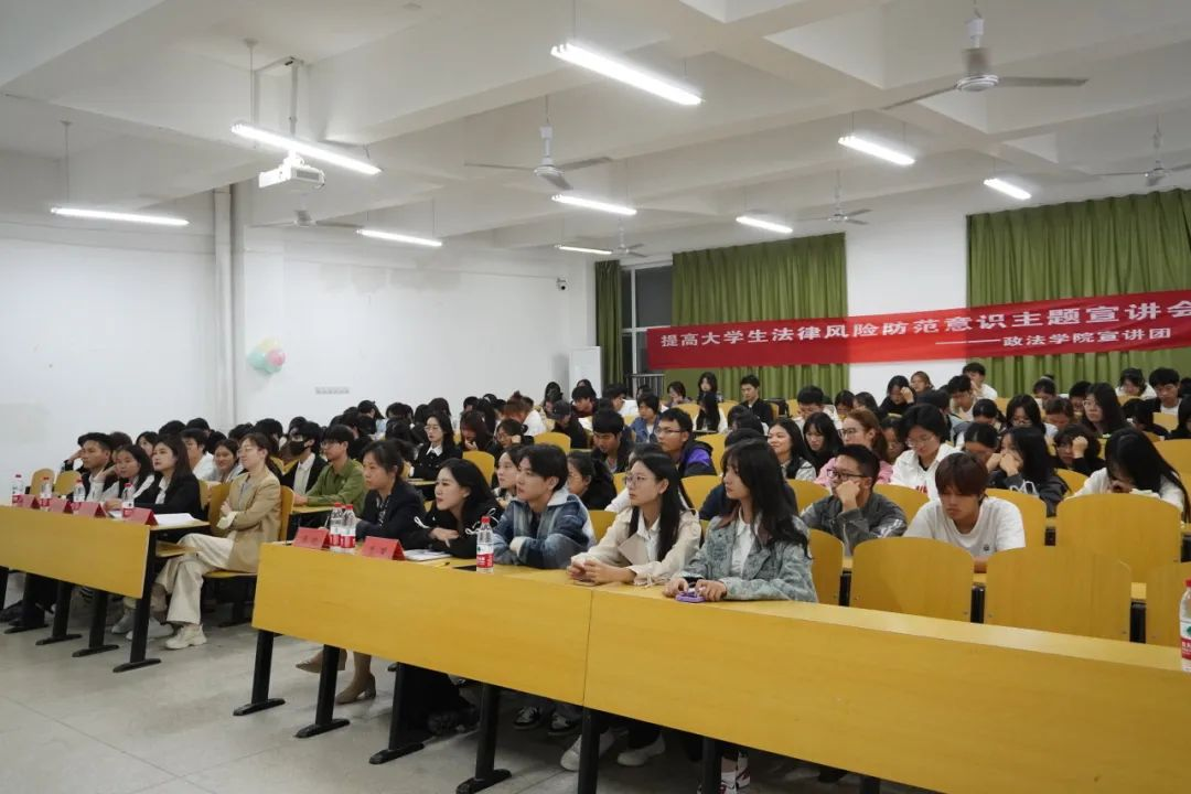 本次宣讲活动旨在提高大学生的法律风险防范意识,提高辨别诈骗手段的能力;同时,通过传播并普及法律风险防范意识,提供实用的应对策略和行为指南,帮助学生预防和应对各类违法行为。希望同学们在经过此次的法治宣讲活动之后,在面对欺诈违法等行为时,能够做出正确的选择。